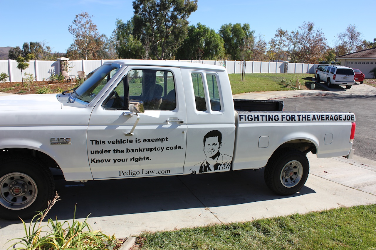Talk about turning lemons into lemonade. That’s exactly what Orange County, California solo Brian Pedigo did, when he converted a lemon of a pick up truck into a professional and tasteful mobile advertisement. Here’s the backstory, directly from Brian: