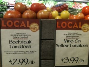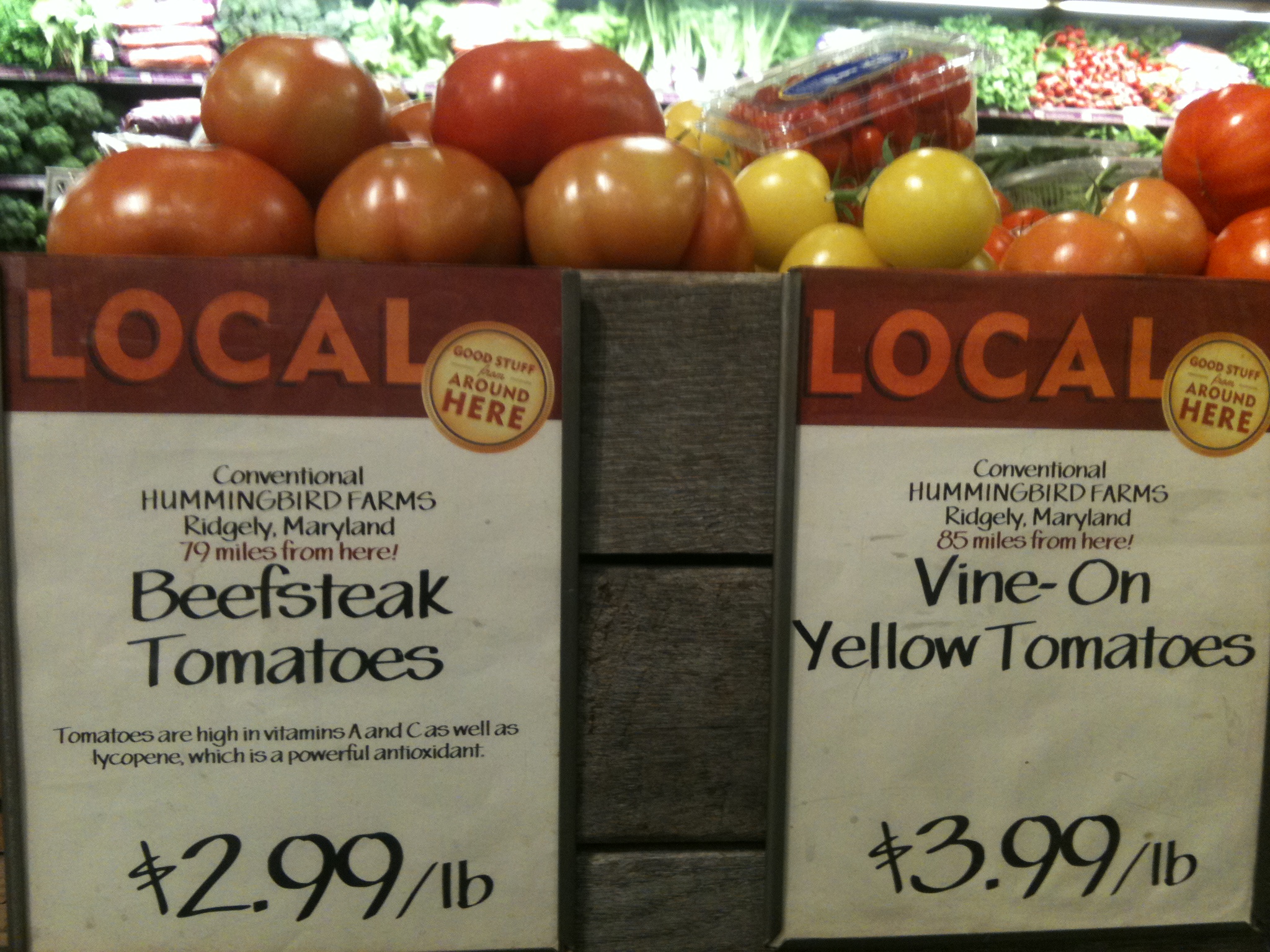 Yesterday, while shopping in WholeFoods (a reward to myself after a particularly grueling week consisting largely of take-out), I noticed several prominently displayed signs touting local produce. Though the Whole Foods stores in my area have carried local produce for some time, what made this display particularly interesting is that the sign disclosed both the…