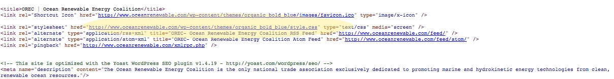 If you search through the code, you can see if the designer used WordPress (indicated by WP) or a WordPress Framework (like Genesis or Thesis) or a particular theme (like the Organic Theme Bold Blue ) shown below on the code snippet from the Ocean Renewable Energy Coalition website.