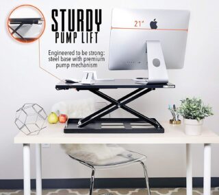 For sedentary lawyers who spend much of the workday sitting, standing desks offer real health benefits.  If you have your own office or unlimited space, you can purchase a desk that can adjust to standing height – there are many options  though some can be costly.  Still, you can experiment with a standing desk with less commitment by choosing an elevated desk that mounts on top of your existing desk.  One such option is the Innovadesk which sits atop your existing desk, and convert it into a standing desk. The Innovadesk is large enough to support dual monitors. Another option is the Standing Desk Elite – it will hold only one monitor but no assembly is required.