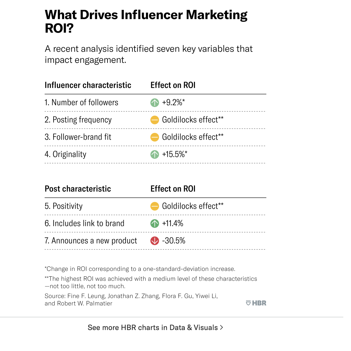 A Harvard Business Review study published in November 2022 also confirmed that influencer marketing really does pay off.  The study found that on average, a 1% increase in influencer marketing spend led to an increase in engagement of .46% – but that number could have been as high as 16% if the company had optimized how they  allocated their budget.  In addition, as with the Forbes article, the Harvard study also corroborated that influencer posts with a link to the brand website  performed best.